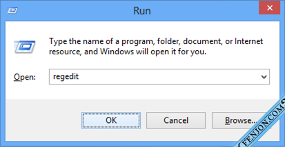 ۱) کلیدهای Win+R را بزنید تا پنجره ی Run باز شود و در آن تایپ کنید regedit و اینتر را بزنید.
